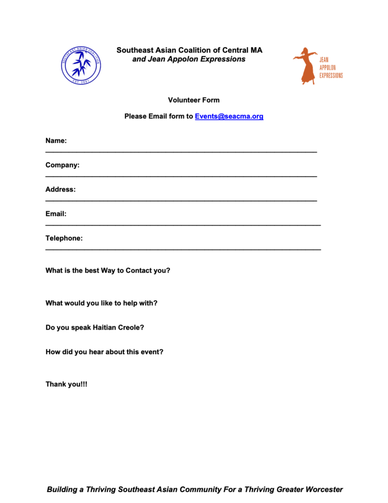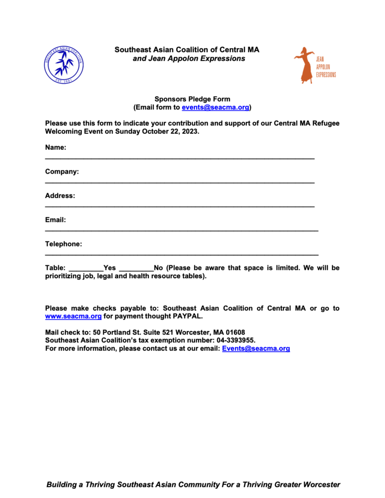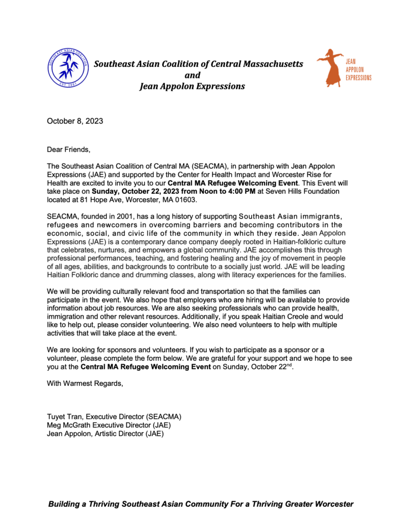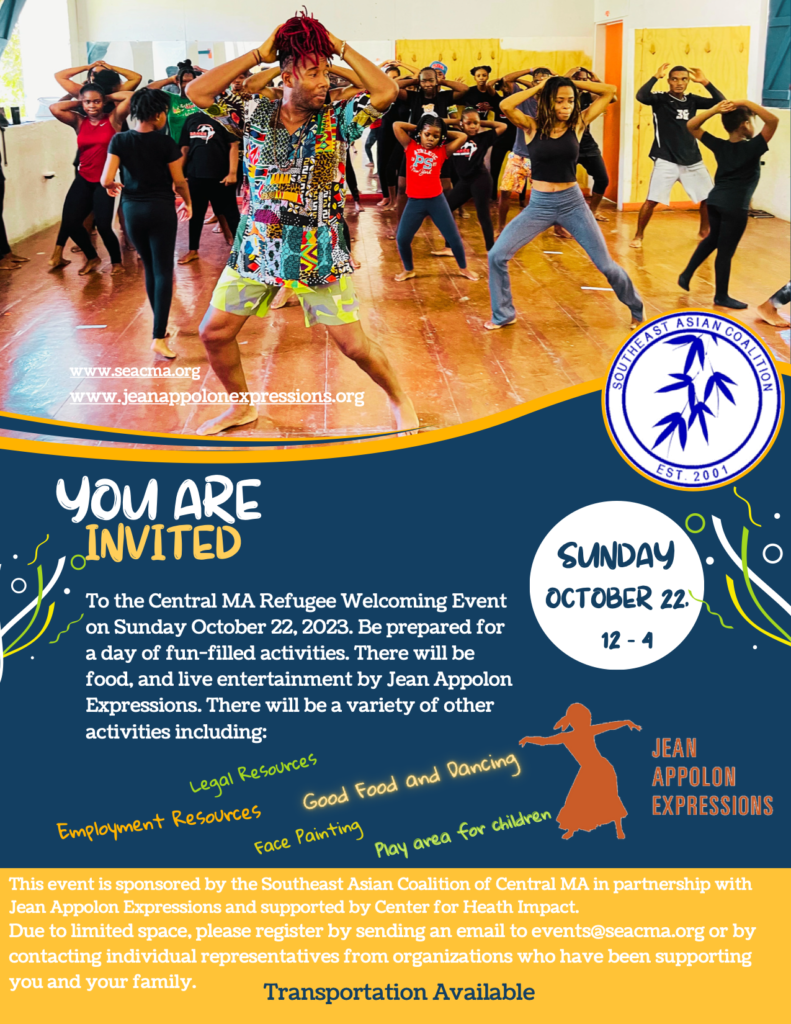 SEACMA AND JEAN APPOLON EXPRESSIONS ARE EXCITED TO HOST A WELCOMING EVENT FOR REFUGEE FAMILIES ON OCTOBER 22ND. For volunteer and sponsorship opportunities, click on this button to download the forms.